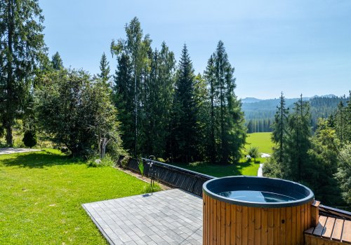 Po dniu spędzonym na górskim szlaku lub stoku zanurz się w gorącej bani z widokiem na Tatry.