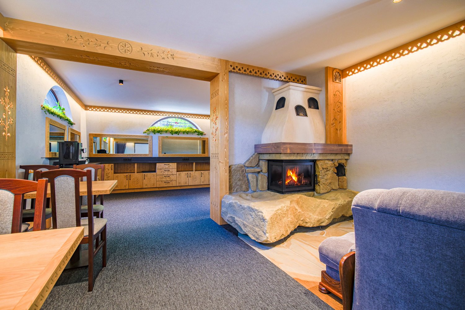 To serce domu – miejsce spotkań, śmiechu i rozmów do późna przy cieple ognia i aromacie górskiego drewna.